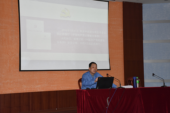 ????2019年11月13日下午,公司紀(jì)委書記鄭建成在公司俱樂部講授《全面從嚴(yán)治黨的紀(jì)律保障》專題黨課,公司領(lǐng)導(dǎo)、各黨總支(黨支部)書記、中層干部及主題教育領(lǐng)導(dǎo)小組辦公室成員聆聽學(xué)習(xí)。鄭建成首先指出,2018版《紀(jì)律處分條例》是全面貫徹習(xí)近平新時代中國特色社會主義思想和黨的十九大精神,以黨章為根本遵循,把黨章和《關(guān)于新形勢下黨內(nèi)政治生活的若干準(zhǔn)則》等黨內(nèi)法規(guī)的要求細(xì)化具體化,堅持使命引領(lǐng)和問題導(dǎo)向,針對管黨治黨存在的突出問題扎緊籠子,實現(xiàn)制度的與時俱進,特別是作為出發(fā)點和落腳點,使全面從嚴(yán)治黨的思路、舉措更加科學(xué)、更加嚴(yán)密、更加有效。他結(jié)合云南省國有資本運營有限公司原黨委書記、董事長劉崗典型案例,舉一反三,引以為戒,重點講授《中國共產(chǎn)黨紀(jì)律處分條例》修訂的背景、主要內(nèi)容和如何認(rèn)真貫徹落實等三方面內(nèi)容。